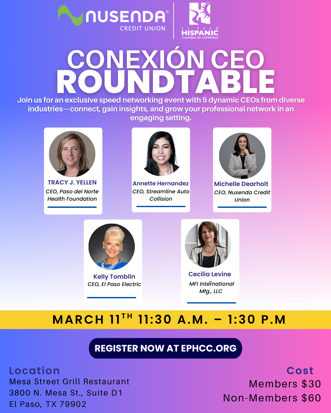 In honor of Women’s History Month, our Women’s CEO Roundtable brings together women and men business leaders for meaningful dialogue, shared insight, and collective impact that strengthens our business community.