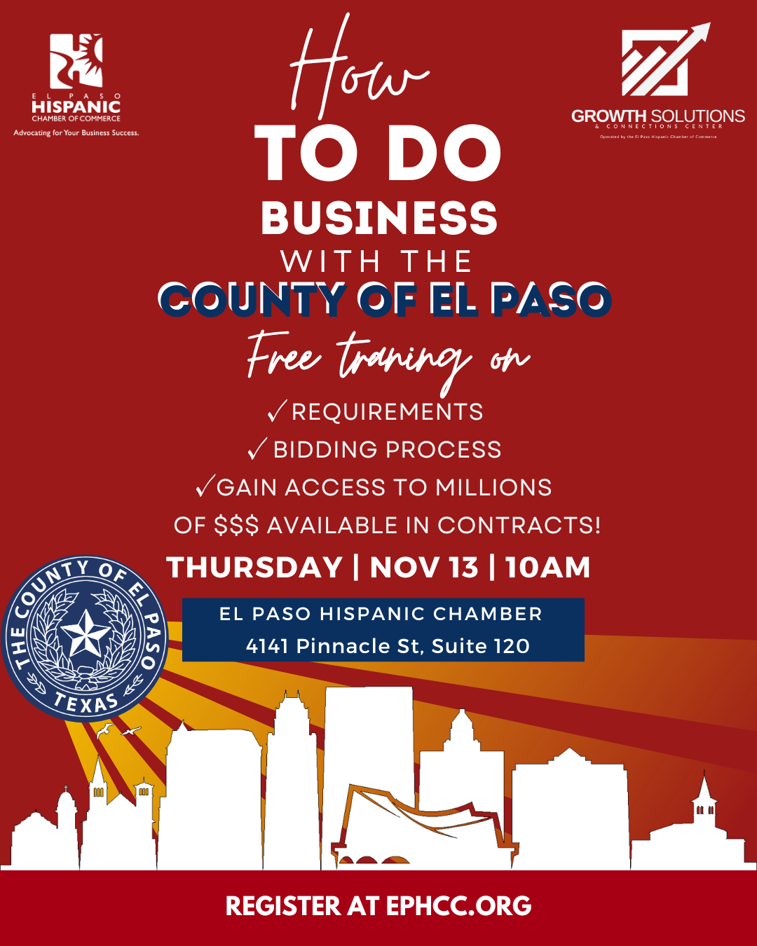 Learn the requirements and bidding process, and how you can gain access to millions of dollars available in contracts with the County of El Paso.